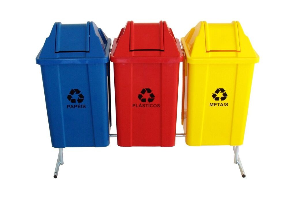 kit lixeira coleta seletiva 100l basculante sup metálico 3un bralimpia