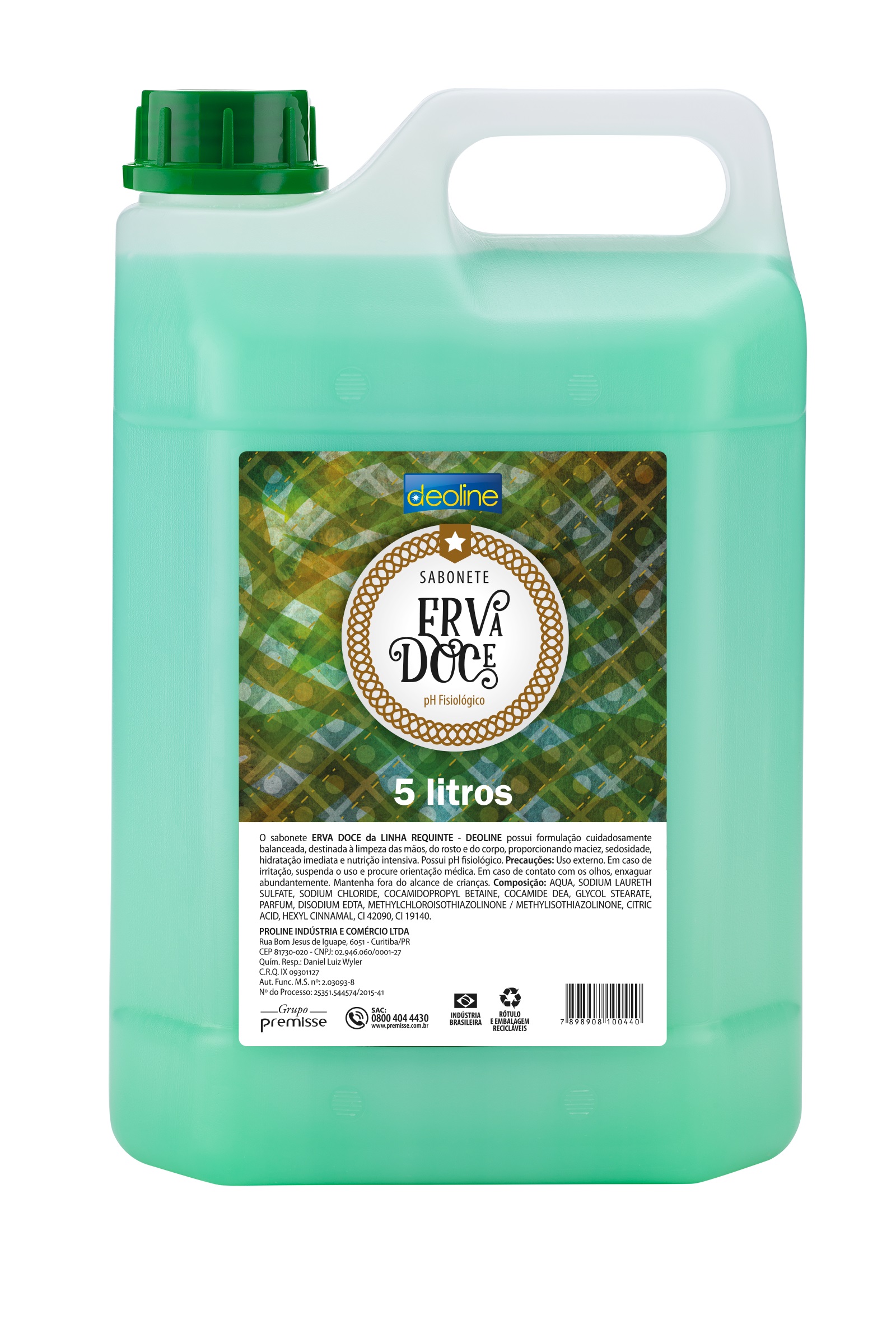 sabonete liquido 800ml bag erva doce suave deoline premisse