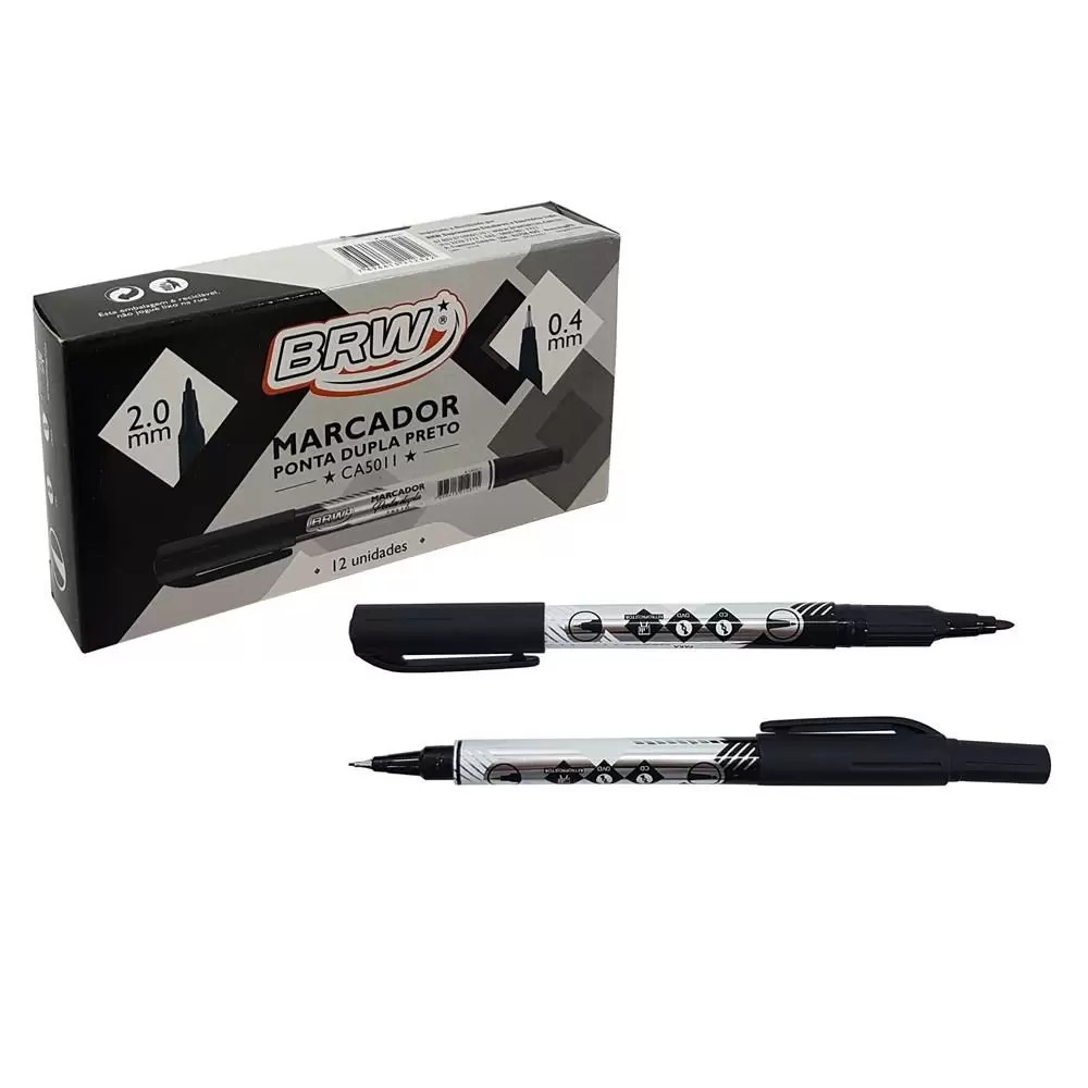 caneta cd/ret. ponta dupla 0,4/2,0 preto brw