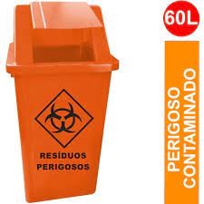 lixeira basculante quadrada 60l laranja rez. perigosos bralimpia