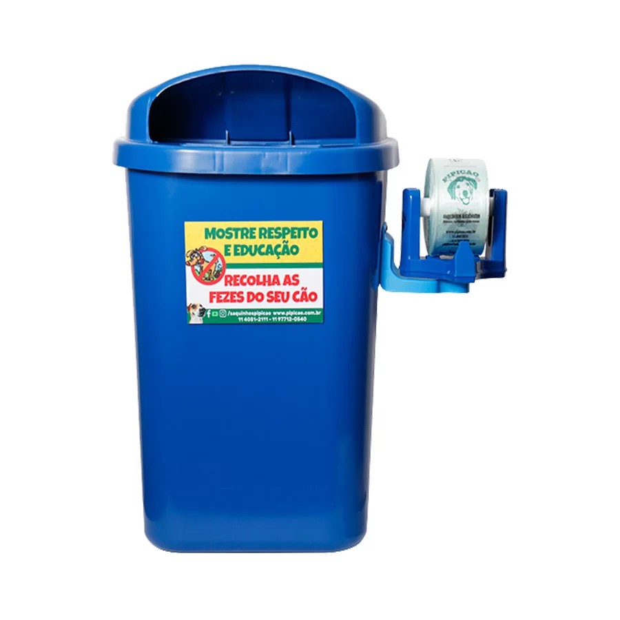lixeira azul 40l com poste e suporte com 1075 saquinhos pipicao