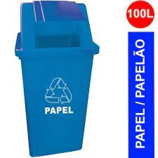 lixeira basculante quadrada 60l azul papel bralimpia