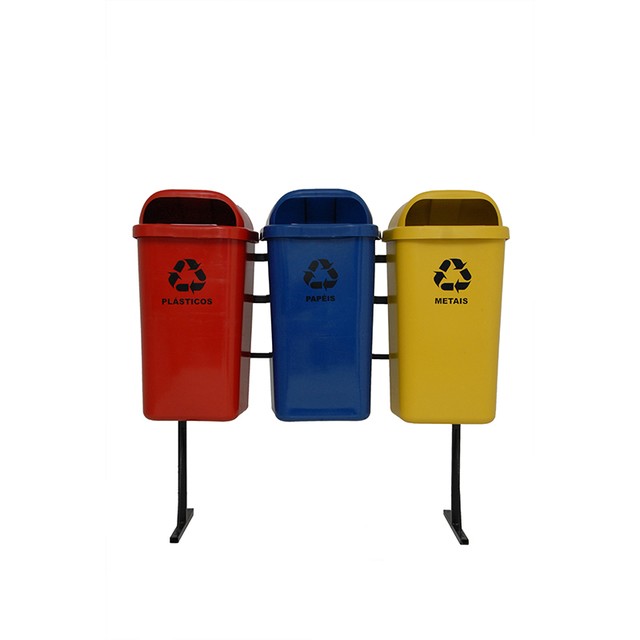 kit lixeira coleta seletiva 50l boca lobo sup met. 3un bralimpia