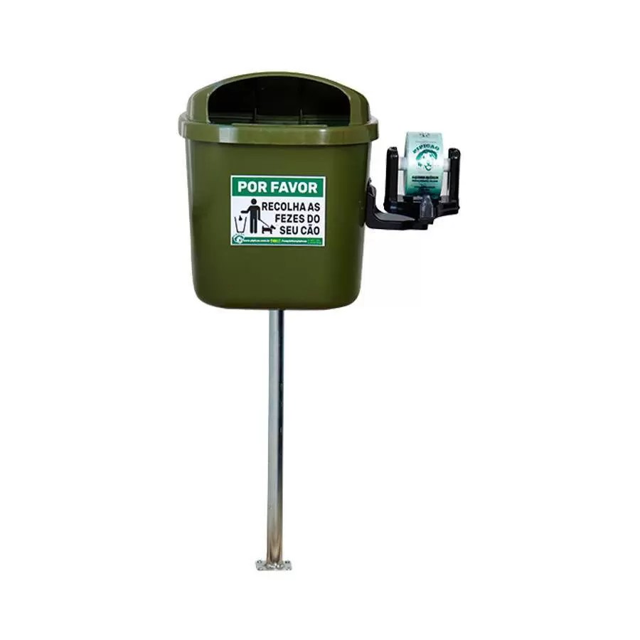 lixeira com poste e suporte 40l verde com 1075 saquinhos pipicao