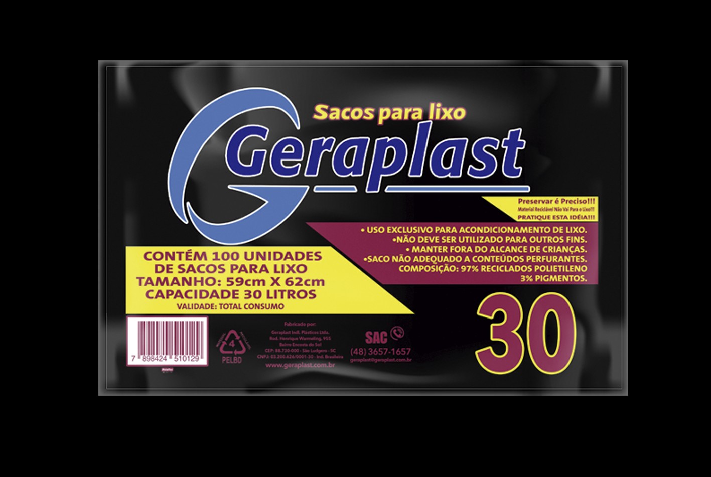 saco de lixo 30l 59x62x0,04 100un geraplast