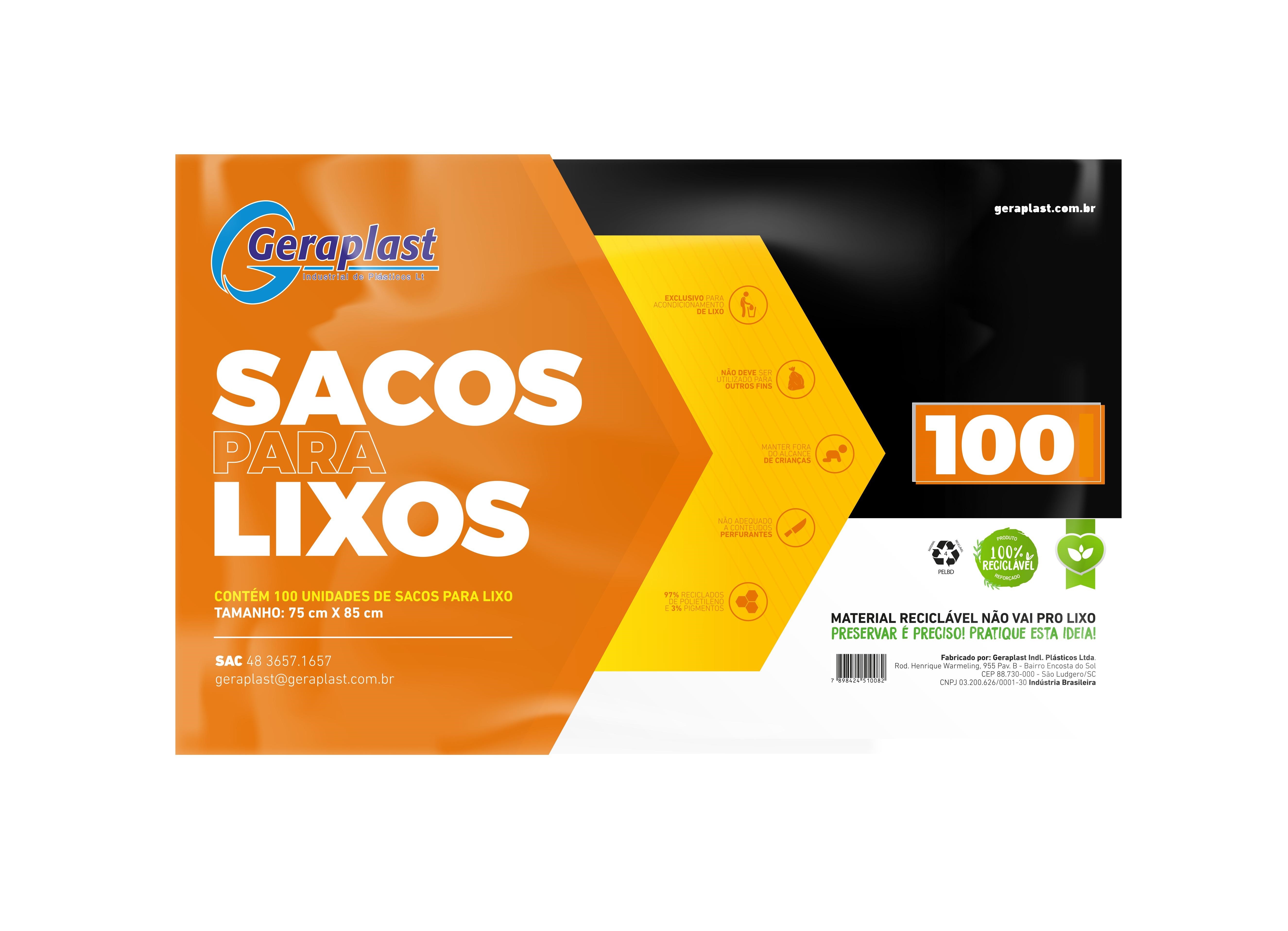 saco de lixo 100l 75x85x0,04 100un geraplast