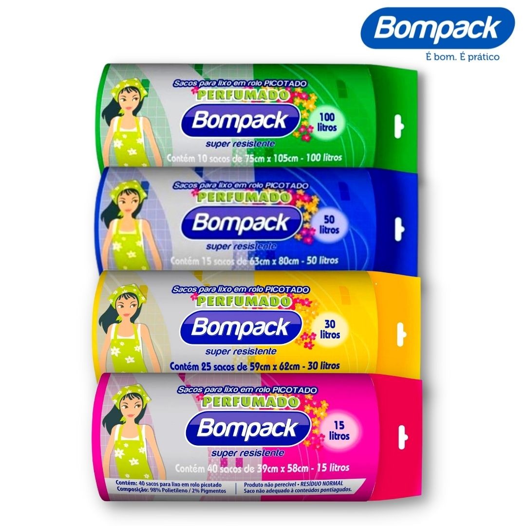 saco de lixo rolo 50lt roll azul moca perfumado c/15 bompack