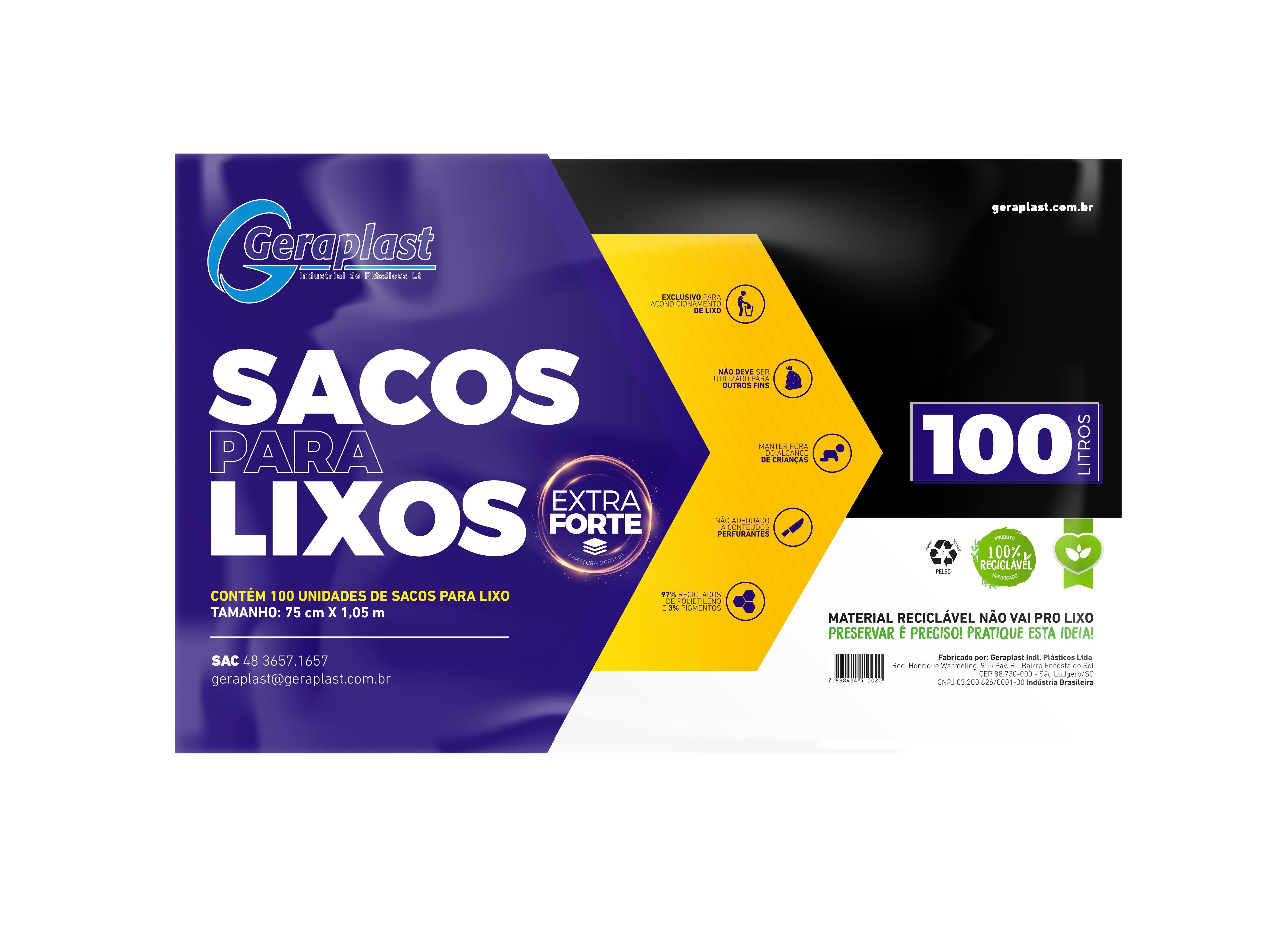 saco de lixo 100l 75x105x0,06 100un geraplast